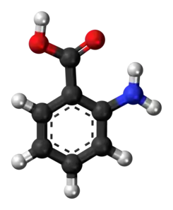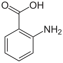 El ácido 2-aminobenzoico, con fórmula química C7H7NO2, también conocido como ácido o-aminobenzoico u orto-aminobenzoico, es un compuesto orgánico con la fórmula molecular de C7H7NO2. Es un derivado del benceno, de la familia de los ácidos aminobenzoicos, dentro de los que se destacan los isómeros para y orto y es más común encontrar la forma metilada del antranilato. Se presume que el ácido antranílico es precursor del indol, compuesto a partir del cual se abre un extenso mapa de reacciones dentro del que figuran la síntesis del aminoácido triptófano, la serotonina, etc.