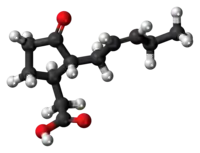 El ácido jasmónico (JA) es el compuesto orgánico característico del grupo de fitohormonas llamado jasmonatos, de origen de lipídico que se aisló originalmente como éster metílico del aceite de jazmín. Se biosintetiza a partir del ácido linolénico por la vía del octadecanoide.[2]