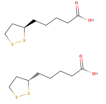 Las diversas formas de LA no son bioequivalentes.[32] Hay muy pocos estudios que comparen enantiómeros individuales con el ácido lipoico racémico. No está claro si el doble de ácido lipoico racémico puede reemplazar al RLA.[41]