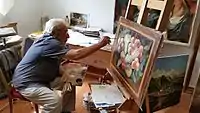 ![]() Ángel García de Diego pintanto en su taller. | ||