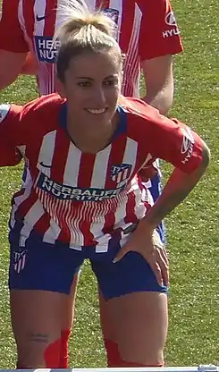 En la temporada 2018/19 ha seguido siendo titular, y ha sido una de las jugadoras que más minutos han disputado durante la temporada. Sus buenas actuaciones le abrieron la puerta de la selección absoluta. Marcó un gol olímpico a pierna cambiada ante el Valencia en partido de Liga.[17] El 30 de enero de 2018 marcó el primer gol del equipo en los cuartos de la Copa de la Reina ante el Athletic de Bilbao en San Mamés ante 48 121 espectadores, siendo el encuentro de fútbol femenino con más espectadores de la historia en España.[18] El 5 de febrero de 2019 fue elegida mejor jugadora del equipo en la primera vuelta.[19] El 15 de marzo de 2019 el Atlético de Madrid instaló una placa con su nombre en el paseo de las Leyendas conmemorando sus 100 partidos como rojiblanca desde que el equipo se integró en el organigrama del club.[20] Terminó la temporada jugando todos los partidos de Liga y marcando 10 goles y dando 15 asistencias, y siendo destacada por la Liga como una de las jugadoras más determinantes del equipo.[21] El 5 de mayo de 2019 el Atlético venció por 3-1 a la Real Sociedad con una asistencia suya y ganaron la Liga.[22] Fue la máxima asistente del campeonato, con 16 pases de gol.[23] Disputó la final de la Copa de la Reina, torneo, en el que el Atlético cayó ante la Real Sociedad.[24] Fue elegida en el once ideal de la Liga,[25] y Marca la nombró jugadora más valiosa por segunda temporada consecutiva.[26]