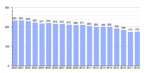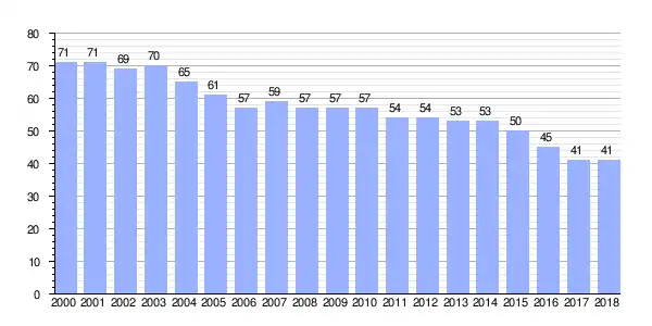 Gráfica de evolución demográfica de Ángeles (parroquia) entre 2000 y 2018 |