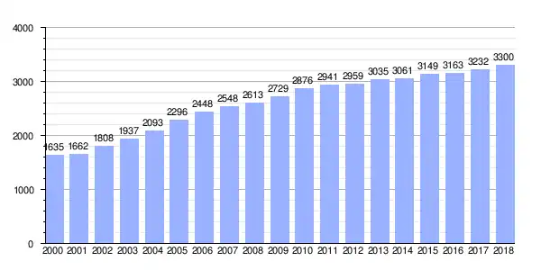 Gráfica de evolución demográfica de Ángeles entre 2000 y 2018 |