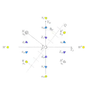 El ángulo se puede expresar en términos de las constantes de acoplamiento de los grupos gauge y ( y , respectivamente):