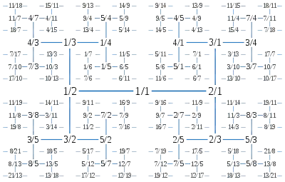 4. La descripción aquí es dual a la definición original de Calkin y Wilf, que comienza definiendo la relación hijo y deduce la relación padre como parte de una prueba de que todo racional aparece una vez en el árbol. Como se define aquí, todo racional aparece una vez por definición y, en cambio, el hecho de que la estructura resultante sea un árbol requiere una prueba.