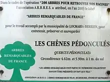 - Roble común (llamado popularmente árbol jirafa) en Fouesnant, 200 años de edad, 18 m de altura y una circunferencia de 2,80 m. Elegido "Árbol del año" el jueves 24 de noviembre de 2011 por el público del primer concurso de este tipo en Francia.[4]
