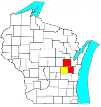 ![]() Mapa de Wisconsin con el Área Estadística Metropolitana Combinada de Appleton-Oshkosh–Neenah (CSA), compuesta por: