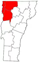 Los 3 condados del estado de Vermont que componen el área metropolitana,[4] junto con su población según los resultados del censo 2010:[5]