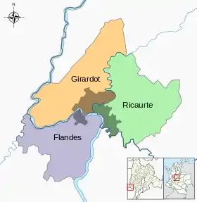 Los límites que definen los municipios son elementos naturales de gran relevancia y que forman parte integral del paisaje urbano, por un lado el río Magdalena, que es una división administrativa a nivel departamental del Departamento de Cundinamarca y del Departamento de Tolima, y que sirve de frontera entre Flandes con Girardot y Ricaurte. Y por el otro lado esta el río Bogotá que define los límites entre Girardot y Ricaurte.