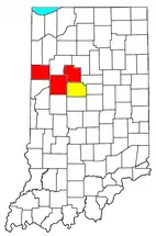 - «Resultados del censo de los Estados Unidos 2010. Condados del estado de Indiana.» (HTML). United States Census Bureau (en inglés). Consultado el 20 de mayo de 2011.