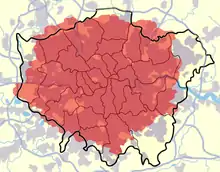 Sus fronteras no están rígidamente fijadas, y se expanden a medida que las opciones de transporte facilitan el transporte diario a mayor distancia de Londres.[3] Cubre la mayor parte de la región denominada Sureste de Inglaterra (South East England) y parte de la denominada Este de Inglaterra (East of England), incluyendo los condados de Kent, Surrey, West Sussex, Berkshire, Buckinghamshire, Hertfordshire y Essex. La población, sumando la del Gran Londres (Greater London) y esos condados adyacentes era de 14,945,000 en 2001.[4] Es una de las mayores aglomeraciones urbanas de Europa.