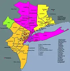 ![]() Mapa del área metropolitana de Nueva York | ||||||