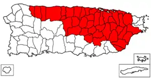 ![]() Mapa de Puerto Rico destacando el área metropolitana de San Juan-Caguas-Guaynabo (MSA) | ||