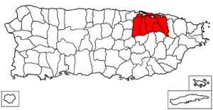![]() Mapa de Puerto Rico destacando el Área metropolitana de San Juan | ||