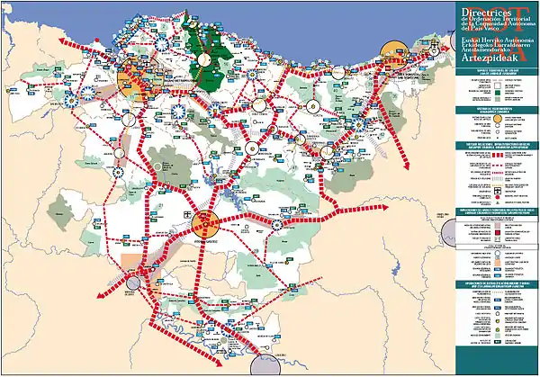 Las Directrices de Ordenación del Territorio del Gobierno Vasco[1][2] establecen los ejes de actuación sobre el medio ambiente, los recursos naturales, el paisaje, los espacios urbanos, industriales y rurales, las infraestructuras y equipamientos del patrimonio histórico y cultural. La delimitación de Áreas Funcionales integradoras de espacios urbanos y rurales, son ámbitos que permiten una ordenación del territorio próxima a los ciudadanos, y el establecimiento de cabeceras para consolidar una red de ciudades medias esenciales para crear nuevas opciones de desarrollo y prestar servicios de carácter comarcal a toda el área funcional.Las áreas de influencia constituyen la base de referencia para el desarrollo armónico y coordinado de la Comunidad y se fundamentan en criterios de interconexión e integración, de tal manera que los planes territoriales y sectoriales, así como el planeamiento municipal, no sean elaborados de forma independiente entre sí, sino que todos persigan objetivos coherentes.