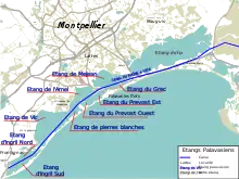 - Lagunas palavasianas, 58 km2, 43°30'N 03°51'E. Sucesión de lagunas costeras unidas entre sí, en el sudeste francés, en el departamento de Hérault, al sur de Montpellier, desde la comuna de Pérols hasta Frontignan, en la región Languedoc-Rosellón, . En la costa, en la barra que separa las lagunas del mar, se encuentra la localidad de Palavas-les-Flots, que da nombre a las lagunas con su gentilicio, palavasiens en francés.