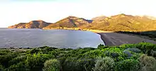 - Parque natural marino del Cap Corse y el Agriates, 6830 km2. Al norte de la isla de Córcega. La zona marina protegida se extiende hacia el norte y el noroeste desde unos 100 km de costa que van desde la península de Cap Corse y el desierto de los Agriates a la Balagne.[6] Dentro de la zona protegida está prohibida la pesca a menos de diez metros de la línea de la costa. Por otro lado, dentro de la reserva, creada en 2012, se encuentra un biotopo protegido desde 1998, el arrecife coralino de San Fiurenzu (Saint Florent), creado para proteger una pradera de Posidonia oceanica. Un estudio de 2020 mostró que también era importante la presencia de la fanerógama marina seba.[7] Una epizootia diezmó las nacras en 2020.[8] El parque forma parte también del santuario Pelagos, un espacio marítimo de 87.500 km2, fruto de un acuerdo entre Italia, Mónaco y Francia para la protección de los mamíferos marinos (ballenas y delfines). Forma un abanico que va desde el norte de la isla de Cerdeña, englobando Córcega, hasta la península de Giens, en Francia, y el Fosso del Chiarone, en la Toscana meridional.[9]