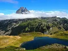 - Monte Viso/Monviso (entre Francia e Italia). Se trata de una reserva transfronteriza que protege 4271 km2 en Francia y 2939 km2 en Italia.[29] El territorio francés está formado por pequeñas poblaciones, algunas de las cuales están en escarpadas cimas, rodeadas de picos de más de 3000 m, en una zona de media y alta montaña. El acceso está limitado por las características geográficas: gargantas, picos, carreteras sinuosas, valles apartados, un mosaico de ecosistemas que van desde los picos rocosos y áridos de las grandes alturas del macizo del Monviso (3841 m) a los bosques, formados, entre otros, por pino cembro. Destaca el bosque de Alevè, en lo alto del valle de Varaita o Varacha, 825 ha de bosque de pino bien conservado entre 1500 y 2500 m, considerado de interés comunitario por la Unión Europea.[30] Entre las especies que viven en los cursos de los ríos de alta montaña destacan la salamandra alpina de Lanza, la culebra lisa europea, mariposa apollo, la mariposa calimorfa, el gallo lira común y el armiño. Entre las plantas, Primula hirsuta blanca, Veronica allionii (verónica de Allioni) y Juncus triglumis.[31]