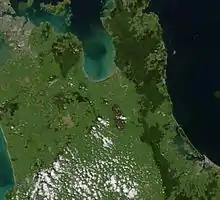 - Kopuatai Peat Dome, 102 km², 37°25'S 175°33'E. Área de conservación en régimen de mayordomía, es decir, que es una zona privada con un régimen especial de conservación. El mayor hábitat ácido intacto (raised bog) de Nueva Zelanda, rodeado por pantanos y lagunas asociadas, una zona importante para aves y plantas amenazadas con invertebrados notables. Se usa para la caza de aves.[20] Consiste en dos pequeños domos de unos tres metros de altura en el centro, uno en el norte y otro en el sur. La mayor parte es ombrotrófica, es decir, que recibe el agua de la lluvia, ácida y con pocos nutrientes.