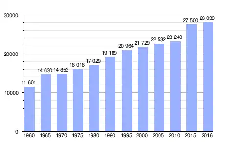 Población de Ängelholm entre 1960 y 2016 |