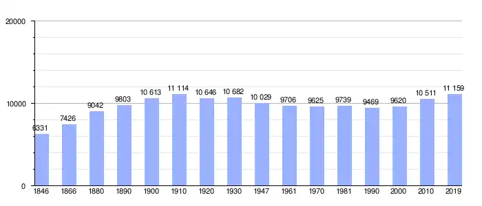 Todos los datos históricos relativos al actual municipio, el siguiente gráfico refleja su evolución demográfica, incluyendo municipios después de efectuada la fusión el 1 de enero de 1977.
