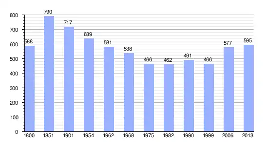 Los datos demográficos contemplados en este gráfico de la comuna de Échemiré[4] se han cogido de 1800 a 1999 de la página francesa EHESS/Cassini, y los demás datos de la página del INSEE.[5]