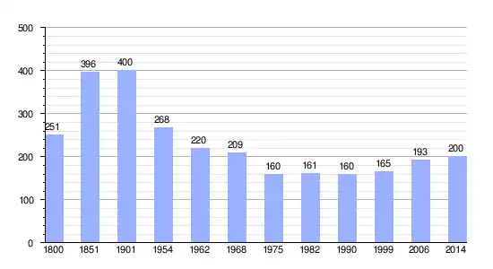 Los datos demográficos contemplados en este gráfico de la comuna de Écrammeville,[4] se han cogido de 1800 a 1999 de la página francesa EHESS/Cassini, y los demás datos de la página del INSEE.[5]