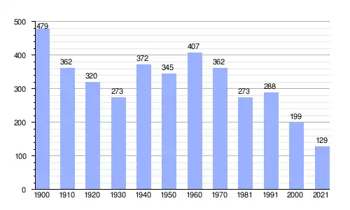 Gráfica de evolución demográfica de Éjeme entre 1900 y 2021 |