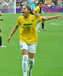 - Velasco, Clara (19 de junio de 2013). «Considerado amador, futebol feminino leva atletas da seleção a jogar sem salário» (en portugués). Folha de S. Paulo. Consultado el 19 de diciembre de 2014.