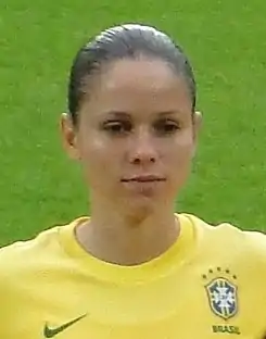- «Craque e beldade da Seleção Brasileira Feminina de Futebol manda recado à massa vascaína» (en portugués). Super Vasco. 27 de febrero de 2009. Consultado el 20 de diciembre de 2014.