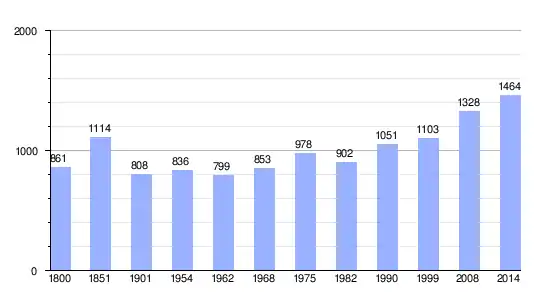Gráfica de evolución demográfica de Étalans entre 1800 y 2014 |