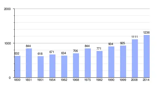 Gráfica de evolución demográfica de Étalans (comuna suprimida) entre 1800 y 2014 |