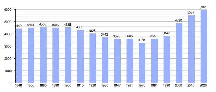 Todos los datos históricos relativos al actual municipio, el siguiente gráfico refleja su evolución demográfica, incluyendo municipios después de efectuada la fusión el 1 de enero de 1977.