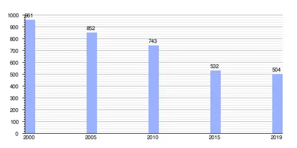 Gráfica de evolución demográfica de Ézaro (parroquia) entre 2000 y 2019 |