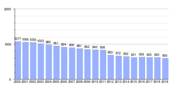 Gráfica de evolución demográfica de Ézaro (aldea) entre 2000 y 2019 |