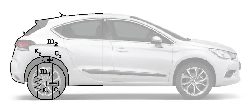 K2= constante de rigidez de la suspensión secundaria (entre la masa inferior y la masa superior) es decir la suspensión del vehículo