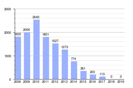 Deuda viva del ayuntamiento en miles de Euros según datos del Ministerio de Hacienda y Ad. Públicas.[4] |