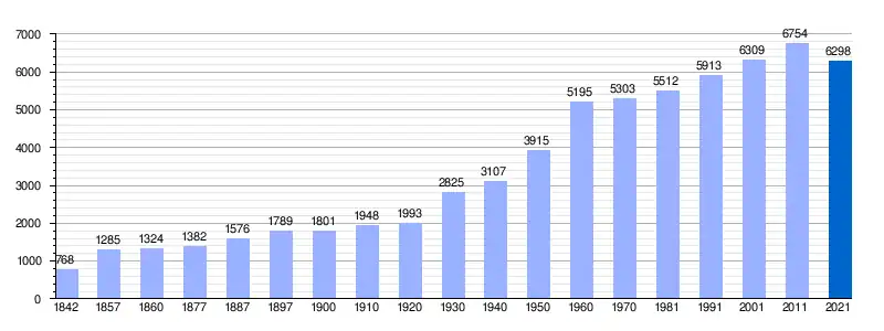Población de derecho (1842-1991, excepto 1857 y 1860 que es población de hecho) o residente (2001-2011) según los Censos de Población desde 1842. Población según el padrón municipal de 2021 del INE. |