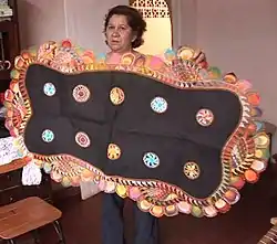 Por lo general, se bordan motivos geométricos o zoomorfos, en hilo blanco o en vivos colores. Preferentemente se realizan detalles para vestimentas, ornamentos religiosos, sombreros, abanicos y todo tipo de artículos ornamentales.