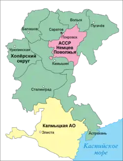 Se estableció por primera vez en noviembre de 1920, siendo su centro administrativo Astracán. En junio de 1928, fue incluido en el krai del Bajo Volga y se divide en dos, en enero de 1934 (krai de Sarátov y krai de Stalingrado). En octubre de 1935, fue erigido en República Autónoma Socialista Soviética de Kalmukia (abolida en 1943).