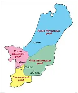![]() Óblast autónomo de Komi en 1927. | |||||||||||||||||||||||||||||||||