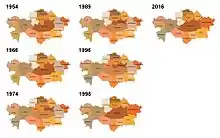 Cambios en los óblasts de Kazajistán de 1954 hasta 1998.