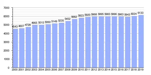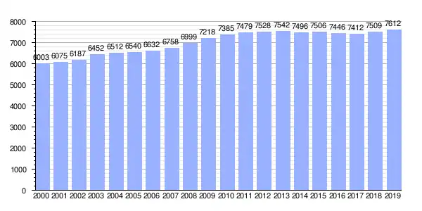 Gráfica de evolución demográfica de Ordes (lugar) entre 2000 y 2019 |