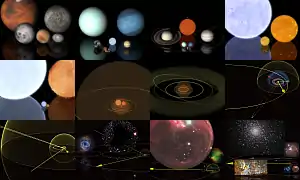 Haga clic en la imagen para ir al orden de magnitud deseado. La escala de las miniaturas va desde 1·106 m (arriba a la izquierda) hasta 1·1017 m (abajo a la derecha). (Descripción de la imagen)