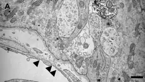 [[File:CVO Estruct.jpg|400px|alt={{{Alt|MVs= microvaso. Procesos celulares de las NSC (flechas sólidas). Asteriscos: dendritas similares a astrocitos/tanicitos. Microscopio electrónico]]
