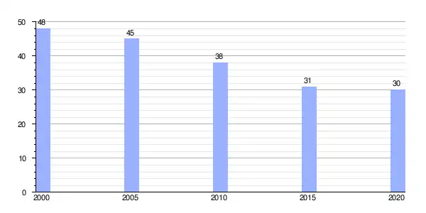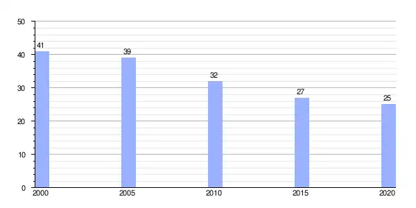 Gráfica de evolución demográfica de Óutara (parroquia) entre 2000 y 2020 |