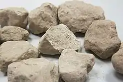 La dolomía calcinada se obtiene mediante la calcinación de la dolomía, con un alto contenido en carbonato de calcio y magnesio CaMg(CO3)2.[2]