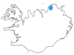 Öxarfjörður localizado sobre un mapa de Islandia.