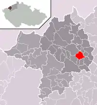 Se encuentra ubicada al noroeste de la región, en la ladera sur de los montes Metálicos, cerca del río Ohře —un afluente izquierdo del río Elba—, de la región de Karlovy Vary y del estado alemán de Sajonia.[1]