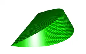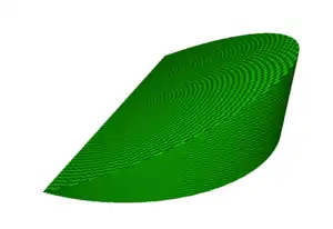 Cuando , la "parte superior" (es decir, la cara plana que no es semicircular como la base) tiene una forma parabólica y el área de su superficie es